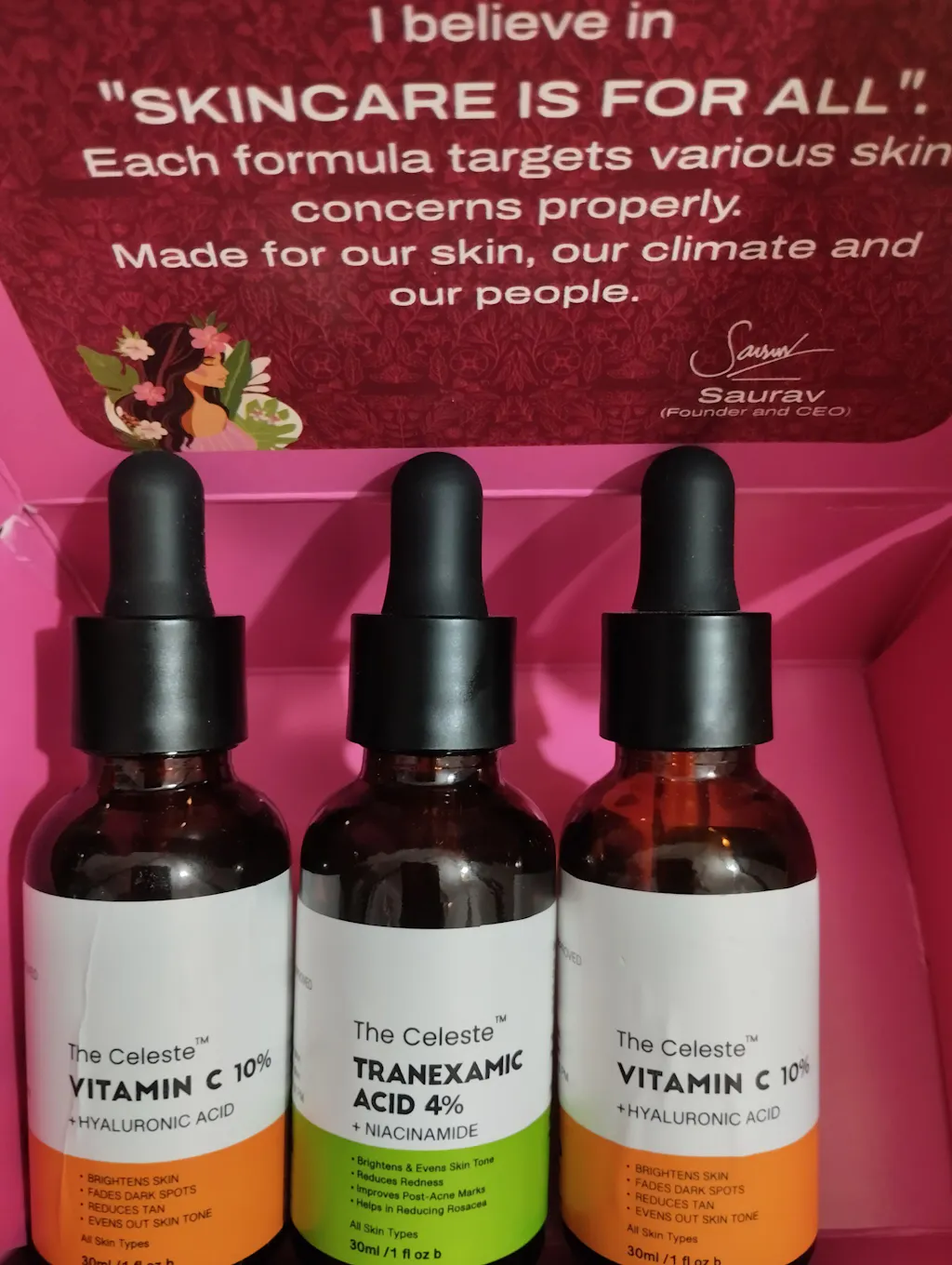 A daily brightening serum with Vitamin C (3-O-Ethyl Ascorbic Acid) + Hyaluronic Acid to visibly reduce sun tan and dark spots, boost glow, and keep skin deeply hydrated and soft.